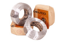 Electro-galvanised, tin- or copper-coated steel wire for stitching applications in the printing industry.